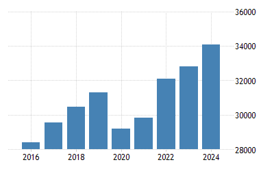 Over the past 28 years the value for this indicator has fluctuated between 31782 in 2018 and 6850 in 1990. Over the past 28 years the value for this indicator has fluctuated between 31782 in 2018 and 6850 in 1990. The description is composed by our digital data assistant.