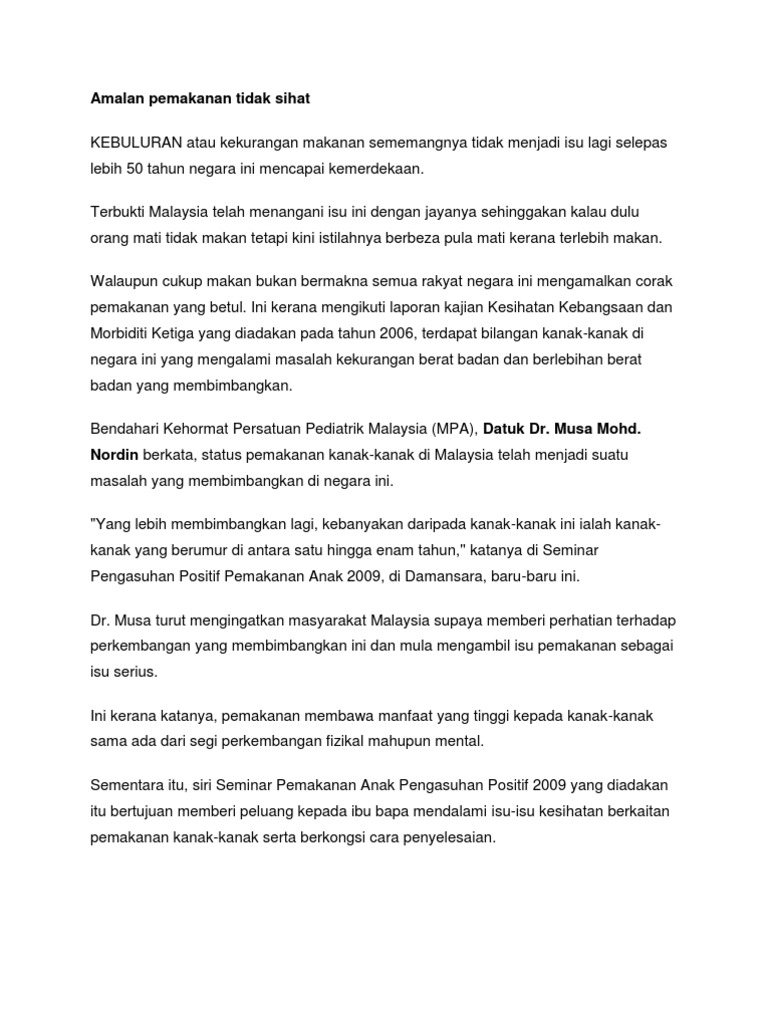 Amalan Pemakanan Tidak Sihat Pdf