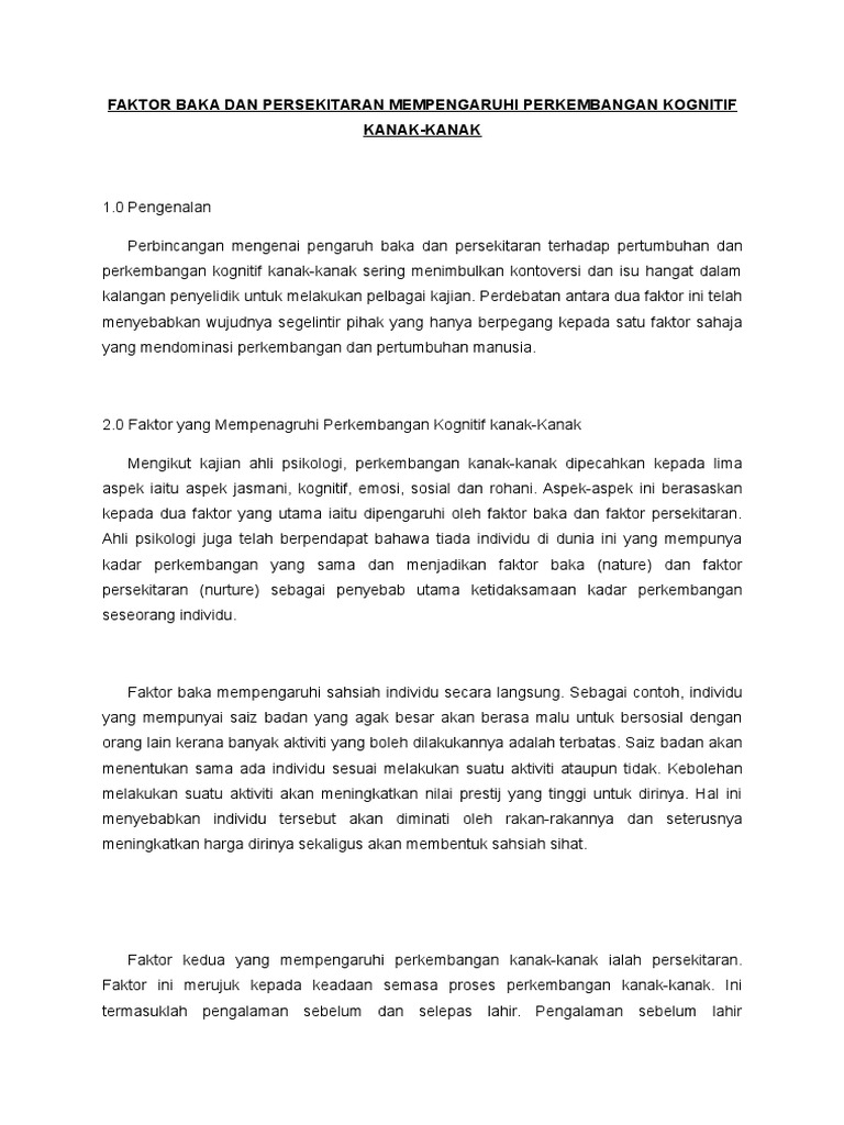 Faktor Baka Dan Persekitaran Mempengaruhi Perkembangan Kognitif Kanak Pdf